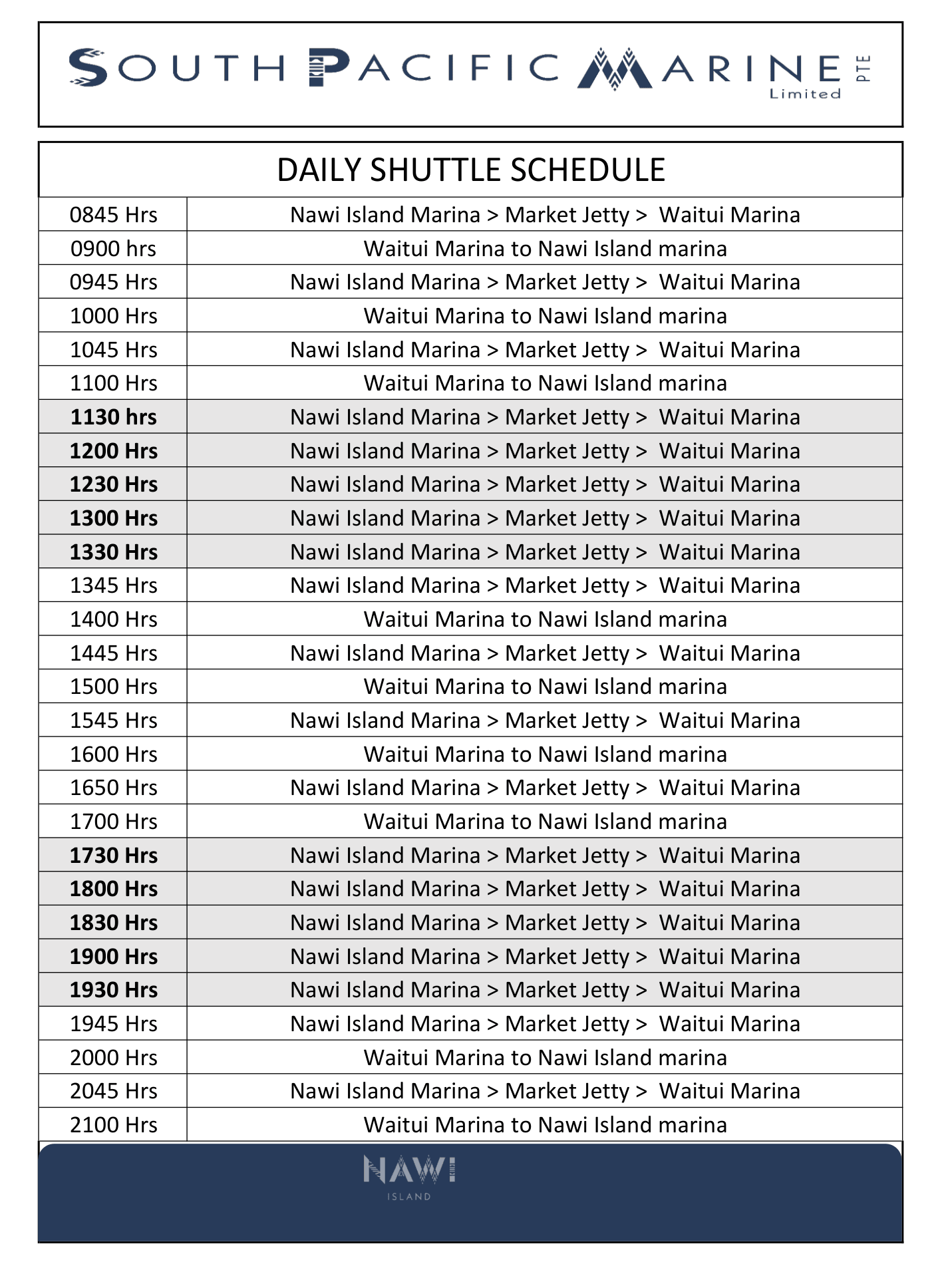 - Nawi to Waitui Marinas Shuttle