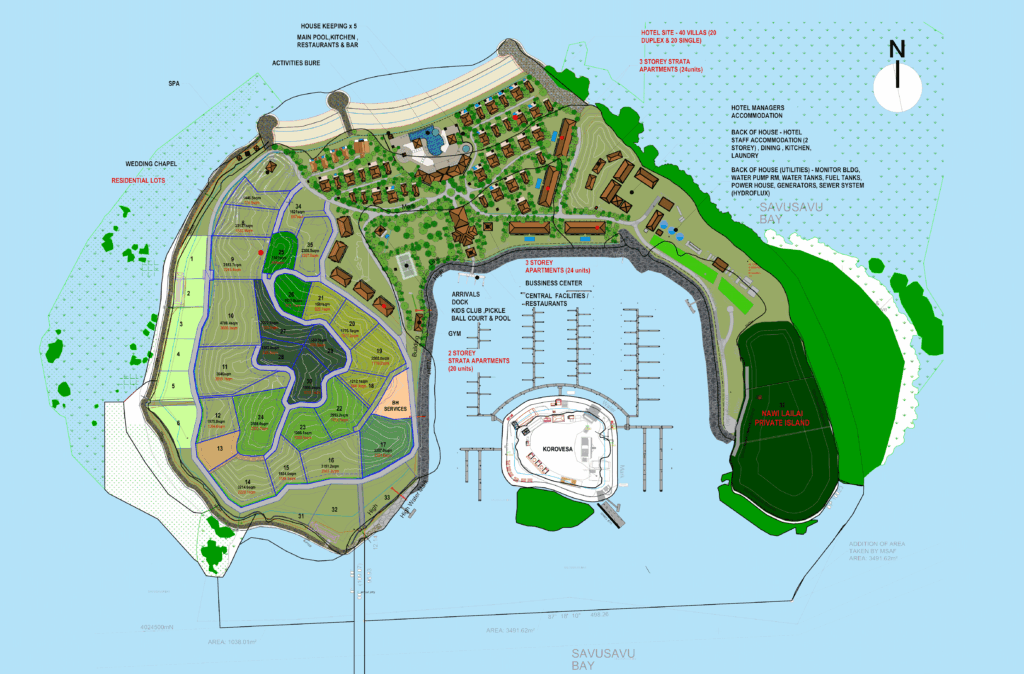 Nawi Island is located within Savusavu’s natural harbour, a beautiful blue water bay surrounding the town of Savusavu.  When completed, the project will include a full service marina, a full service 12 acre boatyard, approximately 50 private residences, a luxurious waterfront resort and spa with all the amenities you would expect from a world class development.  The Nawi Island Marina began accepting tenants in May 2023 and the boatyard began operations in July 2024.  All marina amenities are open for business.